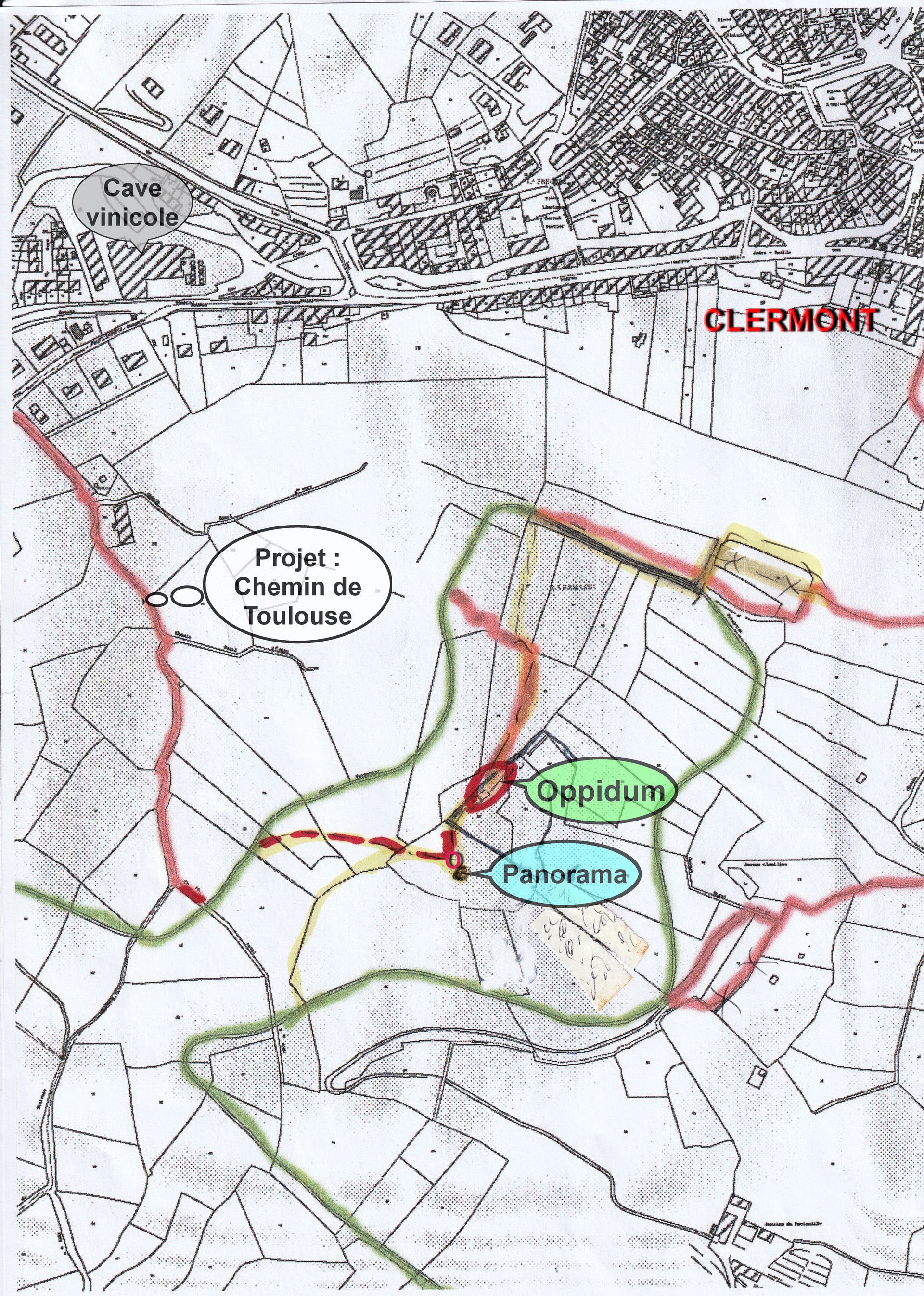 Ci-dessous en vert le tracé du "chemin de Toulouse".