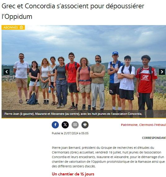 - du 17 au 31 juillet un groupe d'adolescents procédera à l'entretien de l'oppidum et commencera l'ouverture du chemin "dit de Toulouse", un pot de départ clôturera ce chantier le 29 juillet à 19h.