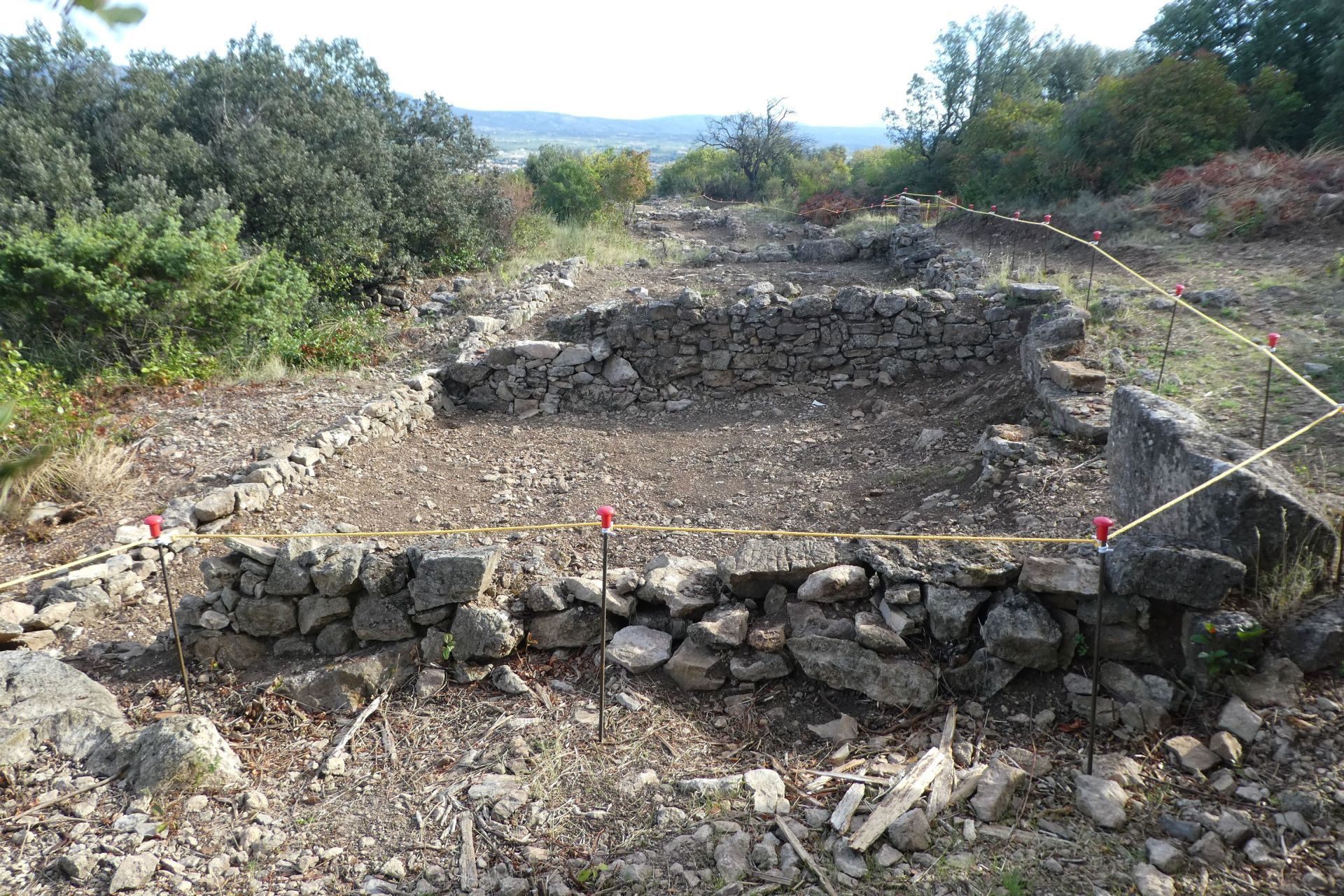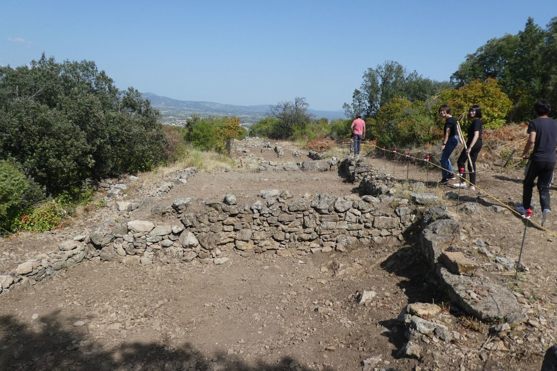 Au programme : le nettoyage et le déracinement des petits arbustes dans les fouilles, l'aménagement d'un passage coté rempart pour réaliser un circuit complet autour du site, l'aménagement d'accès au panorama, ainsi que la finalisation du sentier sud de descente vers la voie forestière.